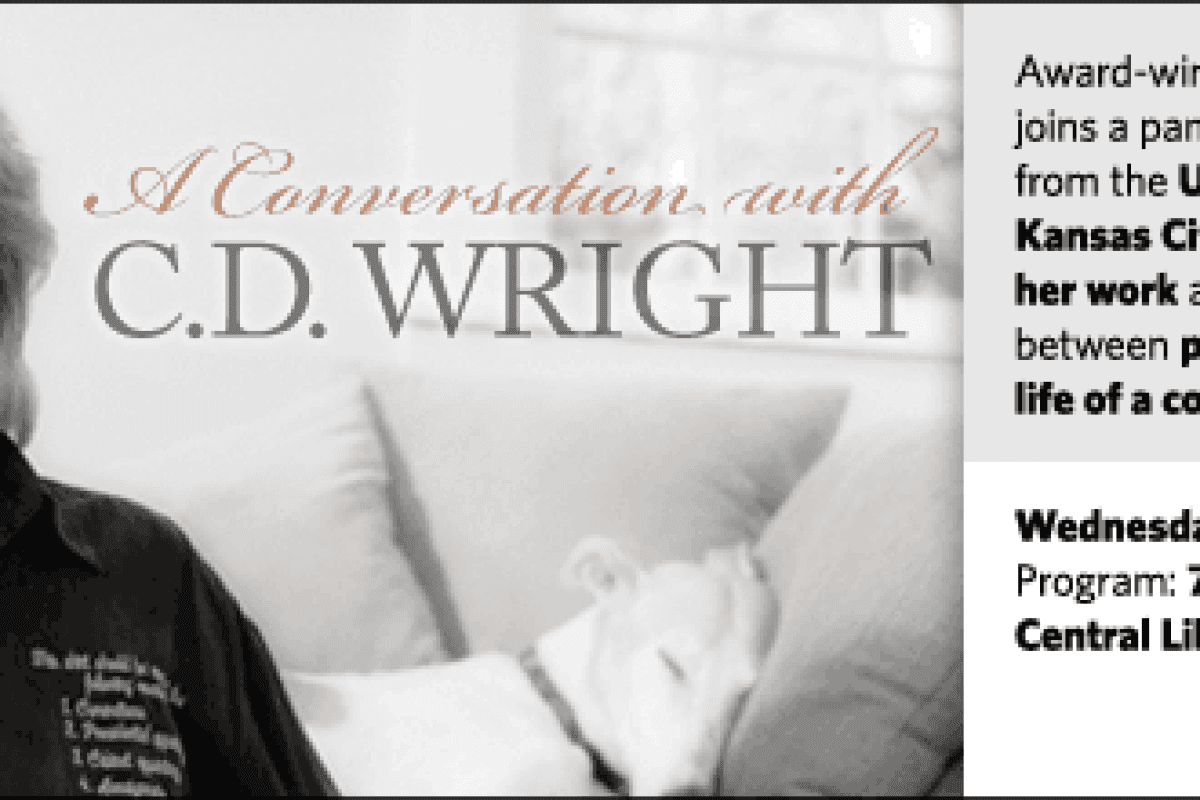 Poet C.D. Wright joins a panel of poetry faculty from the University of Missouri— Kansas City for a discussion of her work and the art of writing poetry on Wednesday, March 11, at 7 p.m. at the Central Library, 14 W. 10th St.